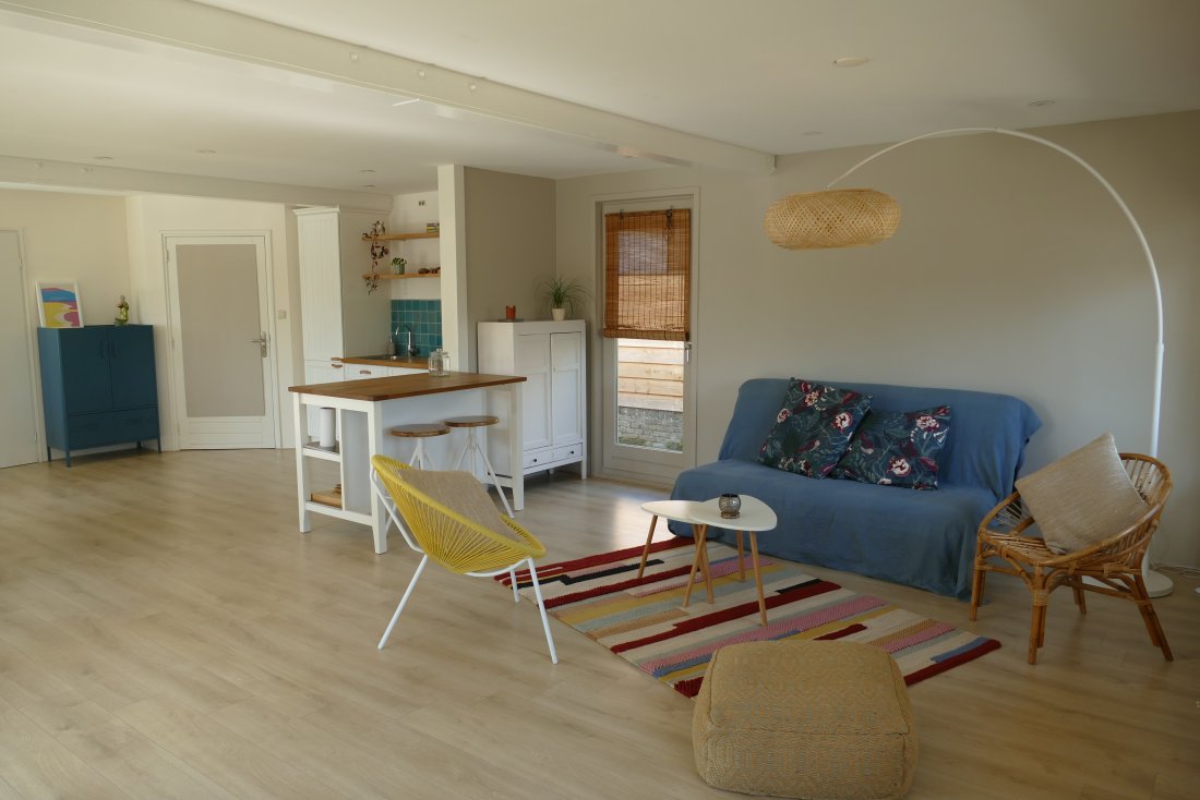 De gezellige zithoek, het keukeneiland en de tuin bieden uitwijkmogelijkheden.